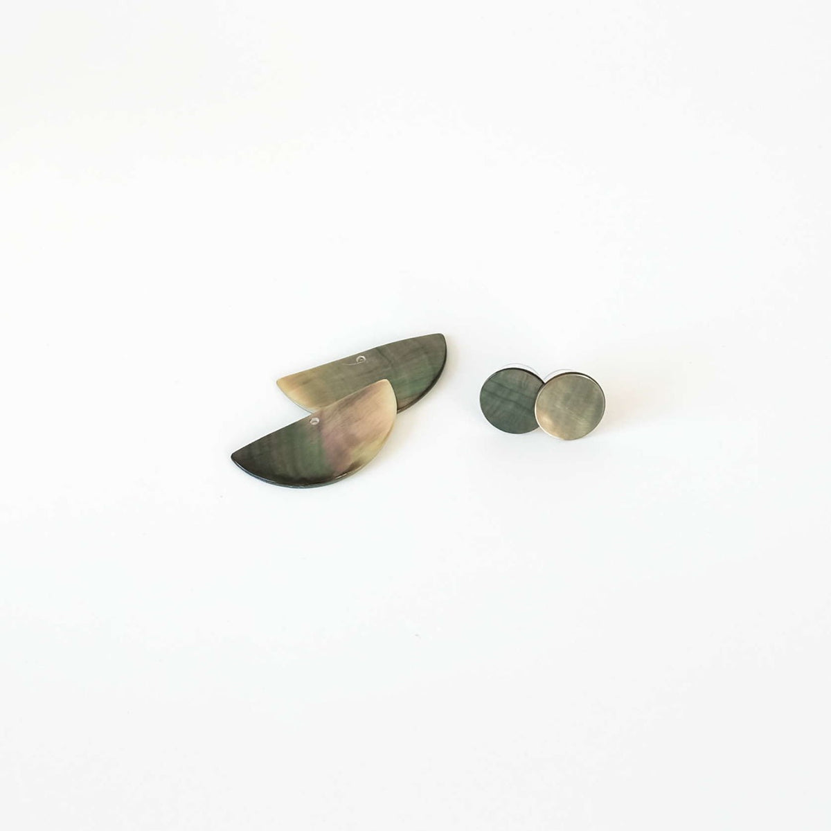 Iridescent Grey Circle And Halfmoon Geometric Studs - Mother Of Pearl Earrings