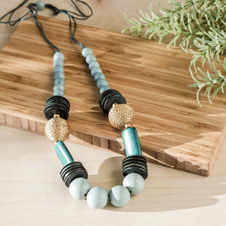 This necklace is handcrafted from wood by artisans in the Philippines.