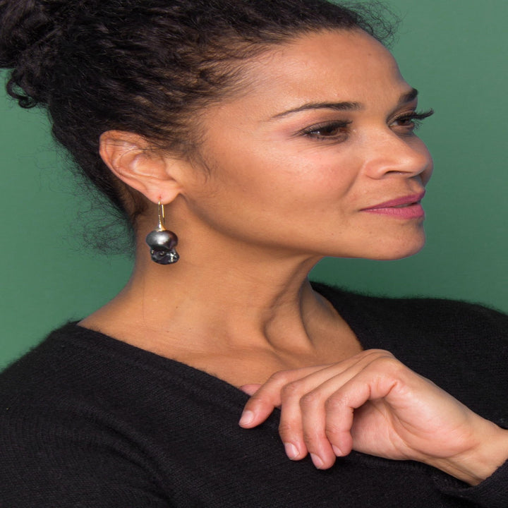 These Pearl Baroque Drop Gray Earrings by Saachi are a modern take on a classic. The timeless baroque pearl is set on a hook backing, creating a feminine and elegant earring you'll want to wear for every occasion. They are a perfect piece to update your wardrobe.