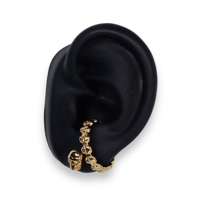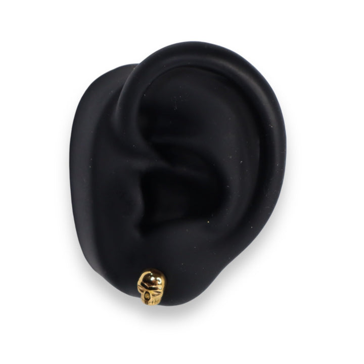 Crafted from hypoallergenic, tarnish-resistant, and water-proof stainless steel, these stud earrings feature a sleek skull design and a gold-plated finish.