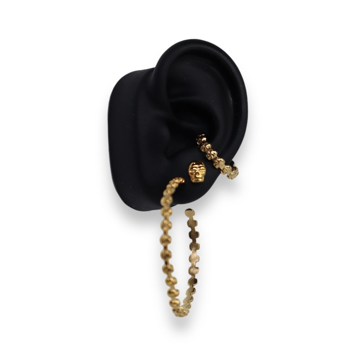These Skull Micro Stud Earrings by Jagged Halo Jewelry are a bold yet refined statement piece. The sleek skull design adds an edgy flair to any outfit, while their micro size keeps them sophisticated and versatile. Crafted from durable stainless steel with a polished gold finish, they are designed for long-lasting shine and everyday wear. These earrings are perfect for those who appreciate a minimalist, punk look without compromising on quality or style. They are a powerful symbol of individuality and rebellious charm.