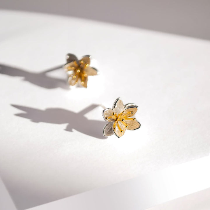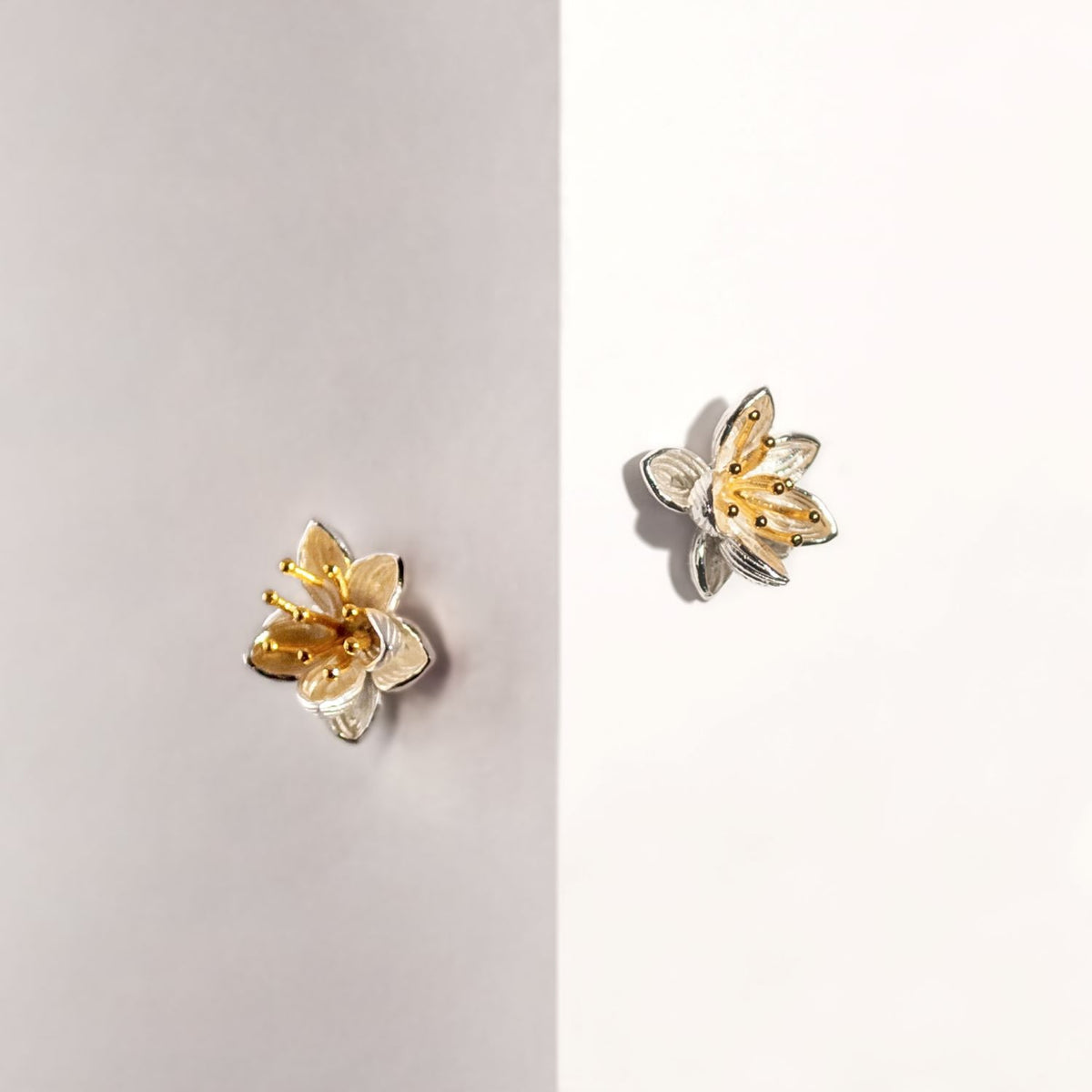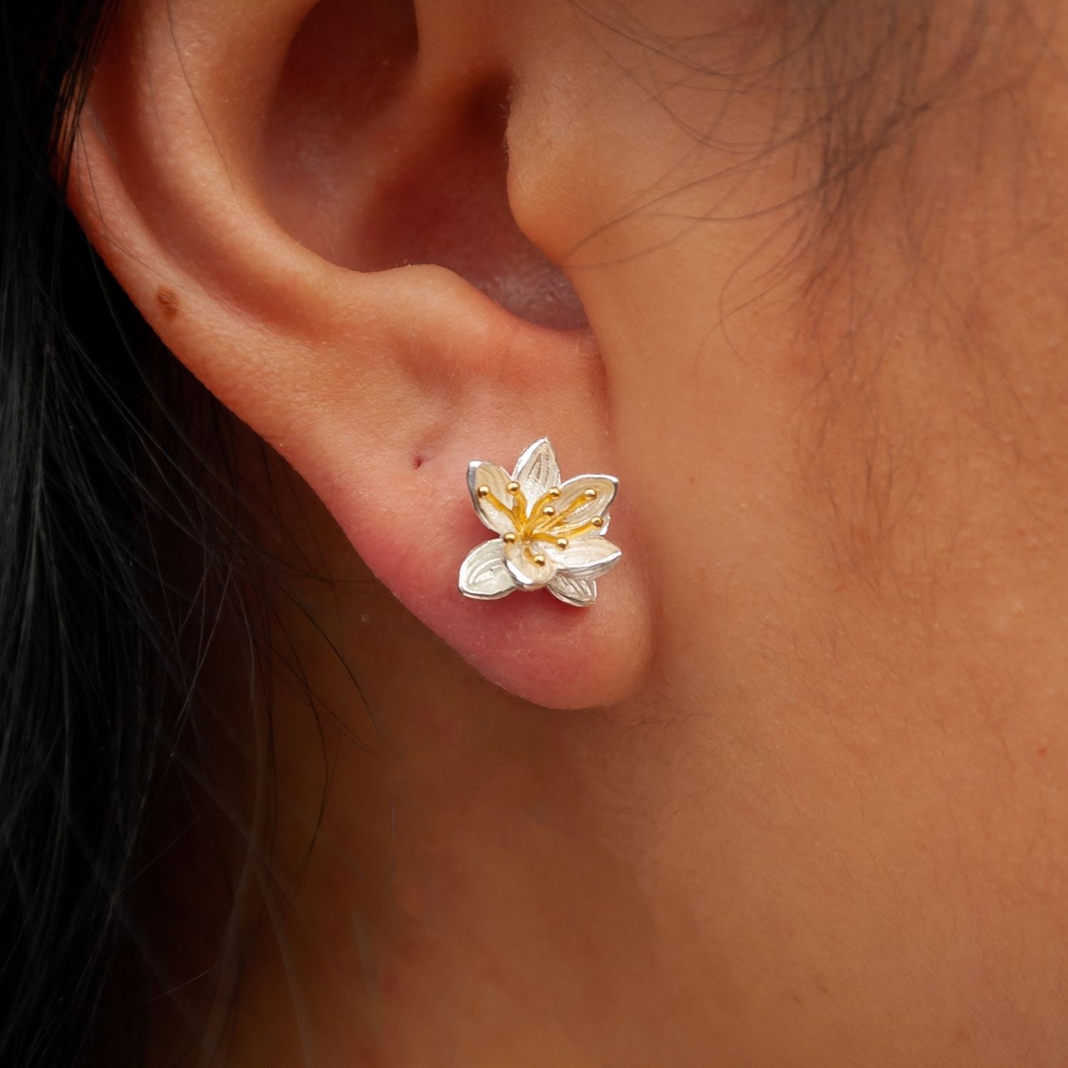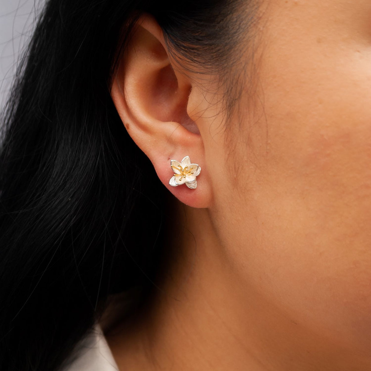 The Sweet Lotus Flower Stud Earrings by Marie June Jewelry celebrate natural beauty with a delicate floral silhouette. Their minimalist yet symbolic design makes them a timeless everyday accessory, combining elegance with subtle charm.