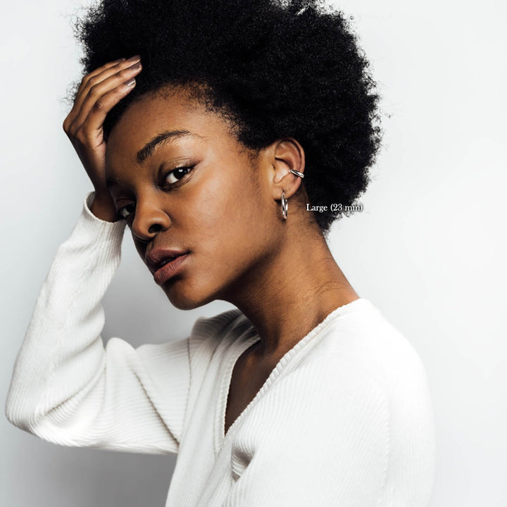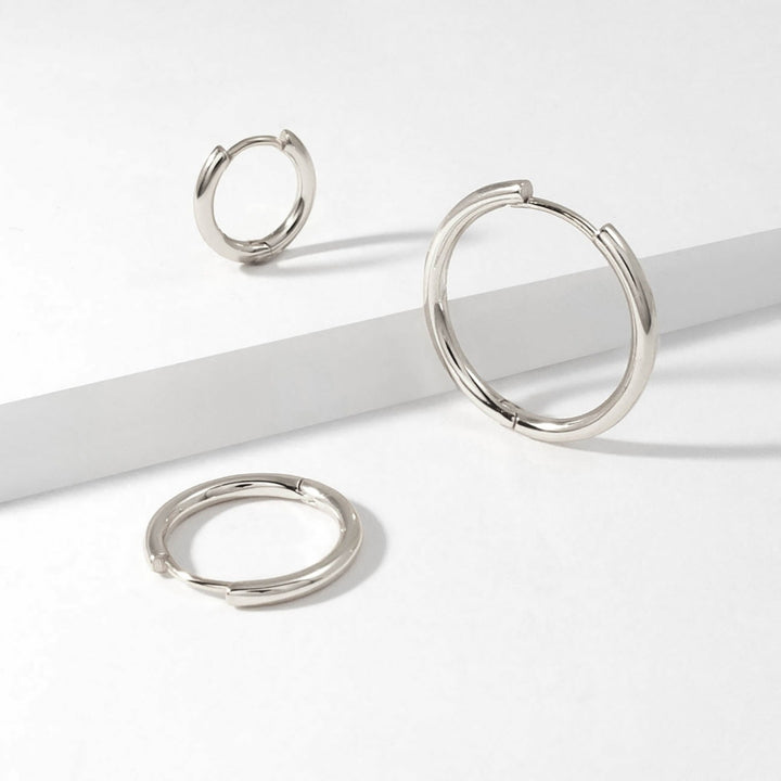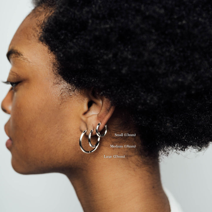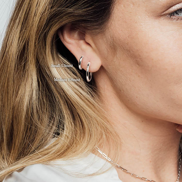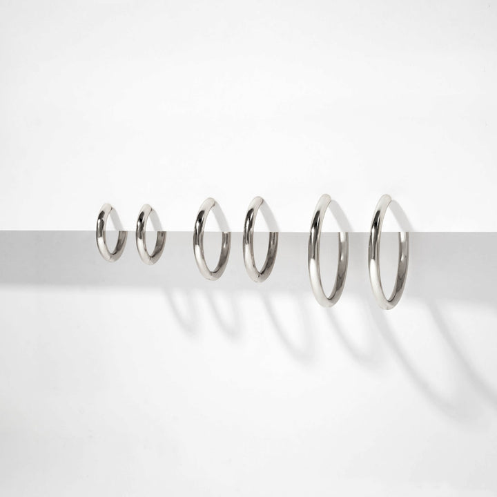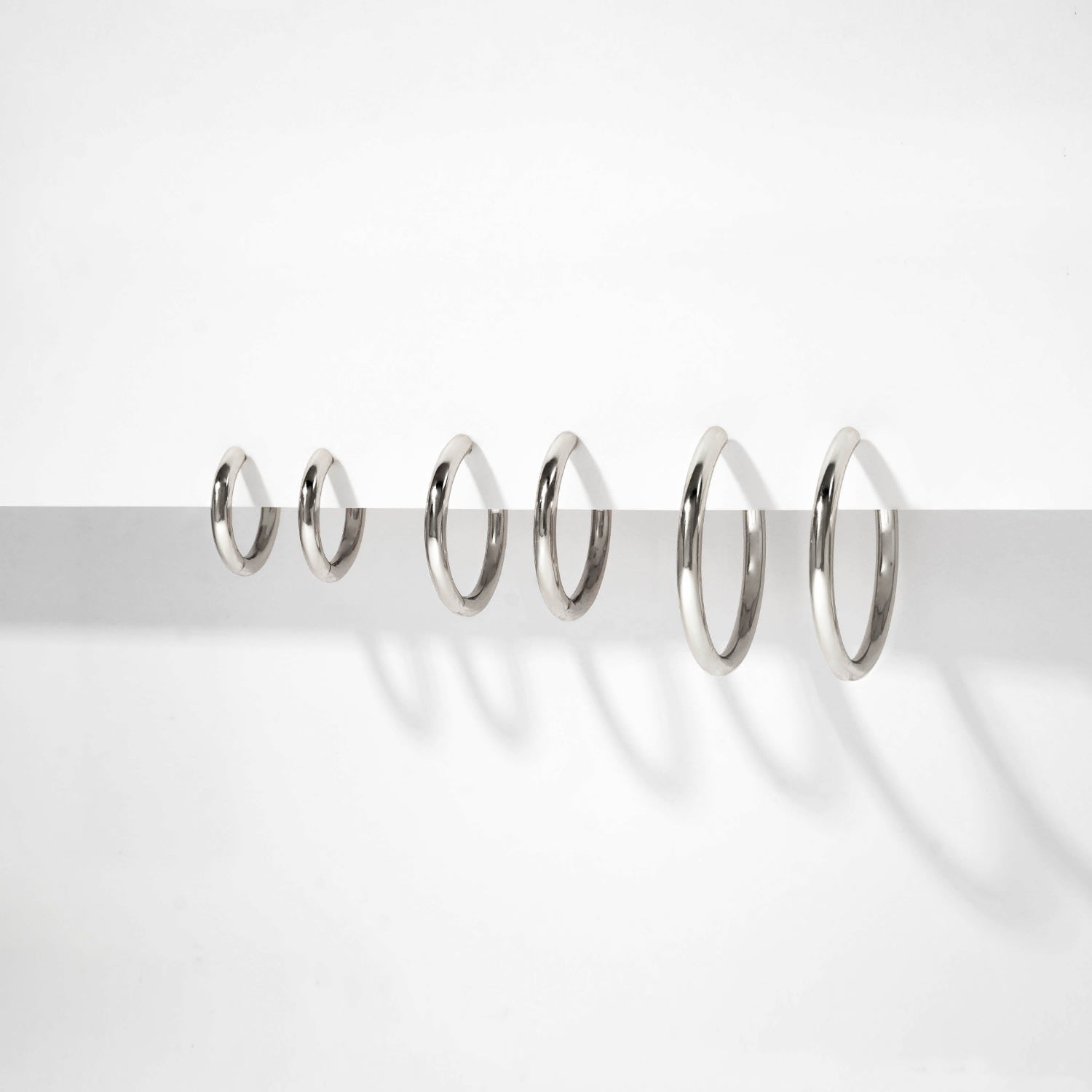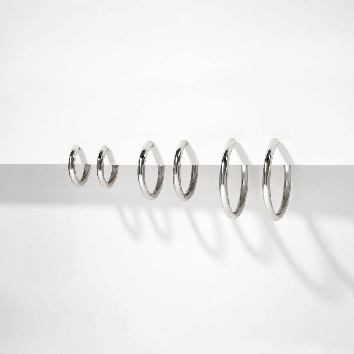 The Classic Hoops Silver Earrings by Marie June Jewelry are a beautiful and timeless accessory. These hoops are meticulously handcrafted and hand-polished to perfection. They are hypoallergenic and will not tarnish, and are made to last a lifetime with proper care.