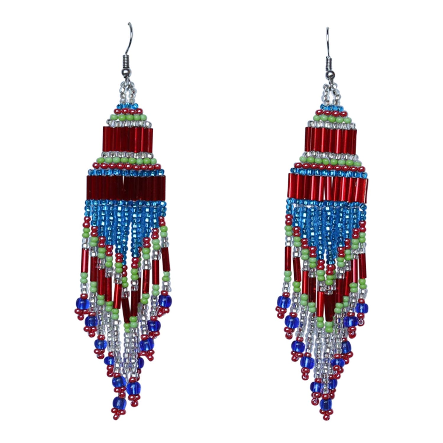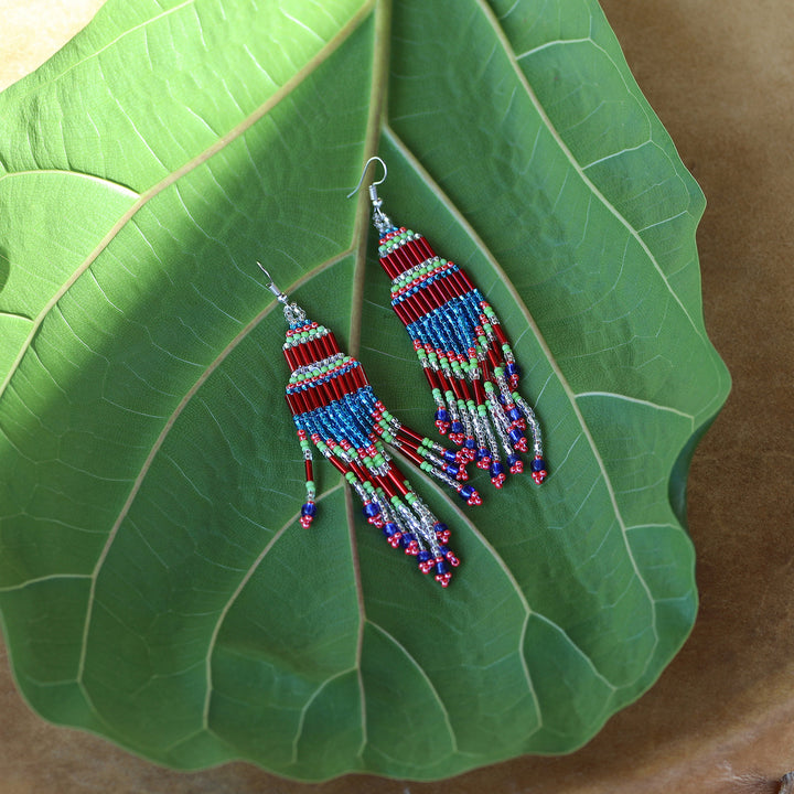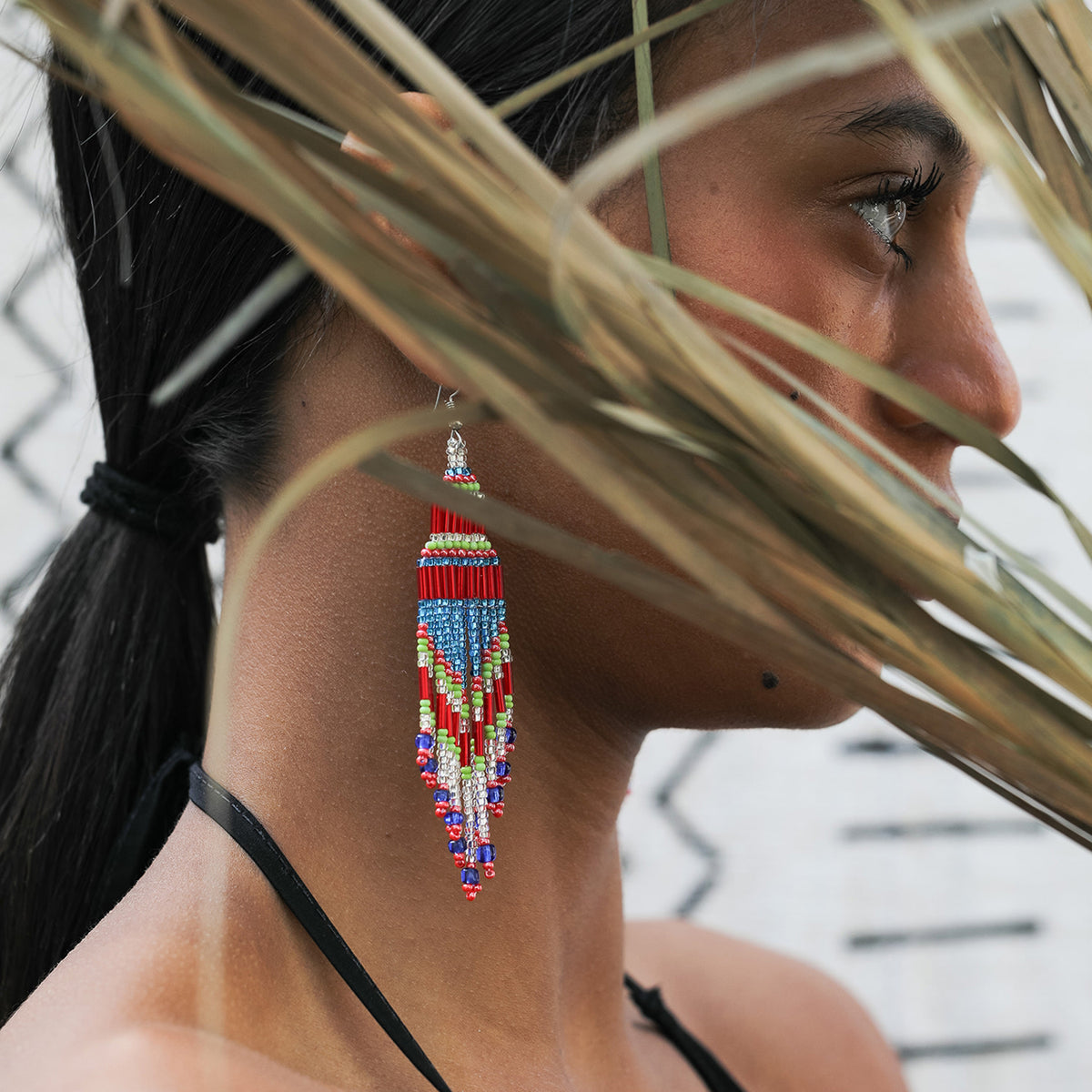 These Encuentro Beaded Boho Earrings - Forever Young by Good Tidings Style are a beautiful and spirited accessory with a rich, handmade feel. Inspired by the Navajo tribe, the intricate beadwork and sterling silver and brass accents create a bohemian-chic look. Each pair is unique, adding a personal and artistic touch to your style.