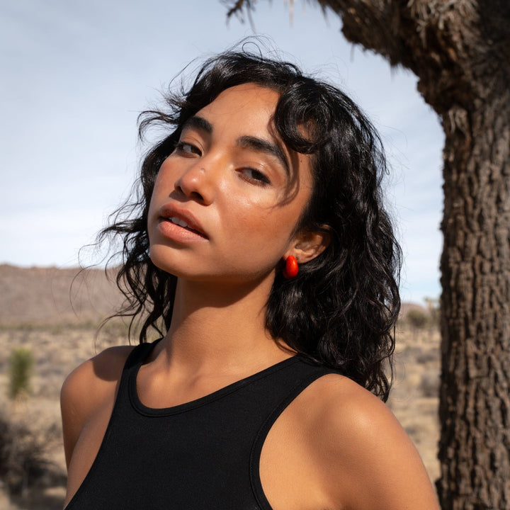 These Chubby Huggie Hoops in Black by By Chavelli are hand-sculpted studs designed to add a playful yet bold touch to your style. Small yet full of personality, their chunky, voluptuous shape hugs the ears comfortably while making a strong statement. The rich black color offers a sophisticated, edgy aesthetic. These hoops are a perfect everyday piece that expresses a fun, confident, and stylish personality, symbolizing a perfect balance of comfort and a spirited flair.