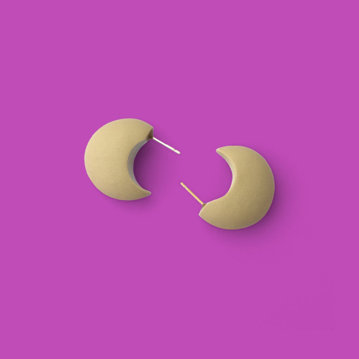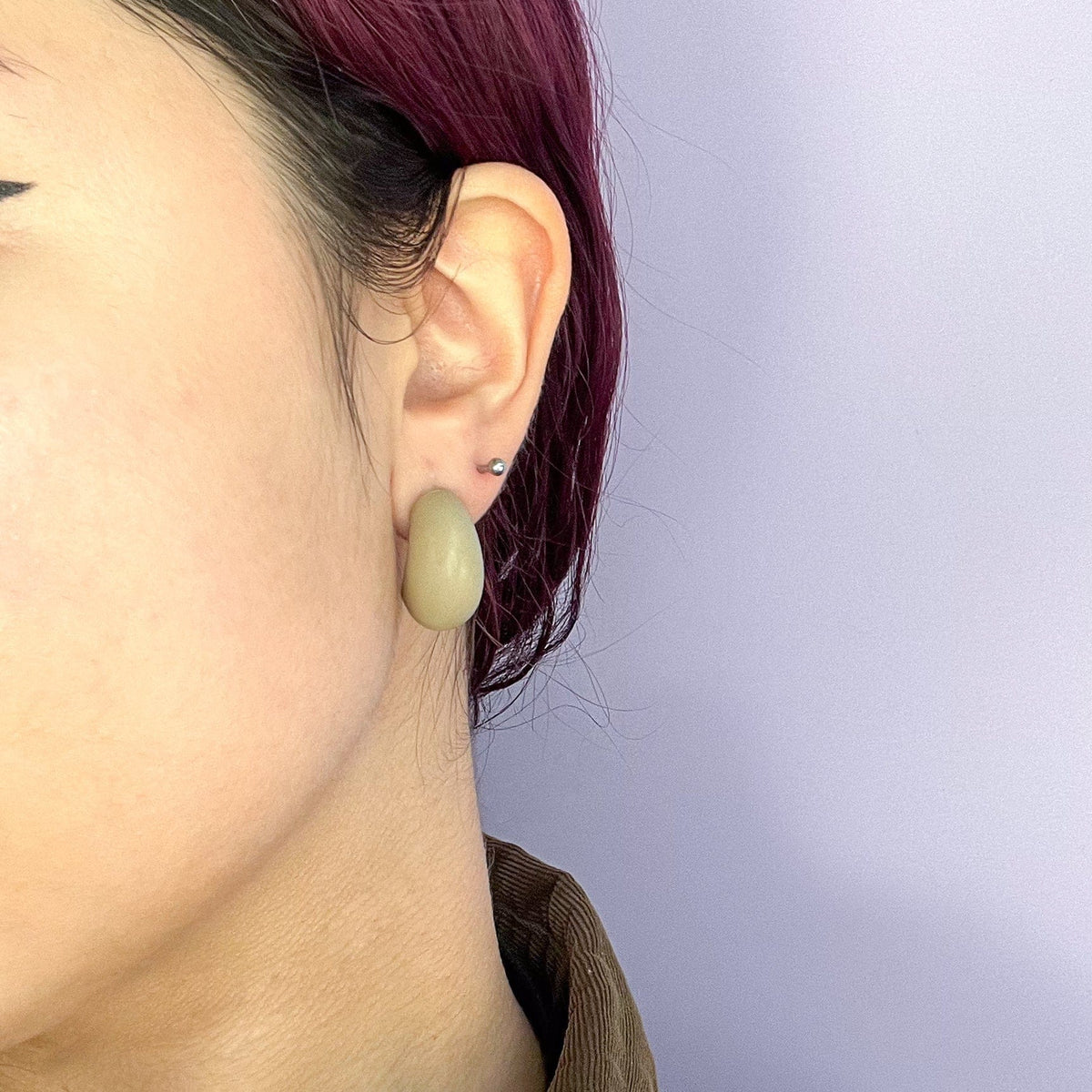 These Chubby Huggie Hoops in Taupe by By Chavelli are hand-sculpted studs designed to add a playful yet bold touch to your style. Small yet full of personality, their chunky, voluptuous shape hugs the ears comfortably while making a strong statement. The rich taupe color offers a sophisticated, neutral aesthetic. These hoops are a perfect everyday piece that expresses a fun, confident, and stylish personality, symbolizing a perfect balance of comfort and a spirited flair.