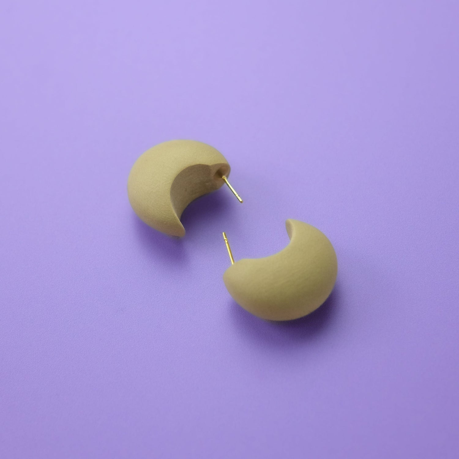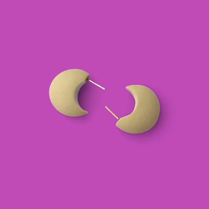 These hoops are hand-sculpted from feather-light polymer clay. They feature nickel-free, gold-plated components, making them suitable for sensitive ears.