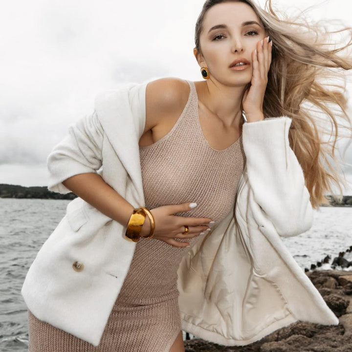 The Indie Statement Sleek Style Cuff - Gold by Viea is a sleek and timeless accessory. This 10mm-wide stainless steel bangle offers a refined and sophisticated look. It's perfect for everyday wear or special occasions, whether worn alone or stacked with other bangles. Crafted from high-grade stainless steel, it combines durability with a bold design.