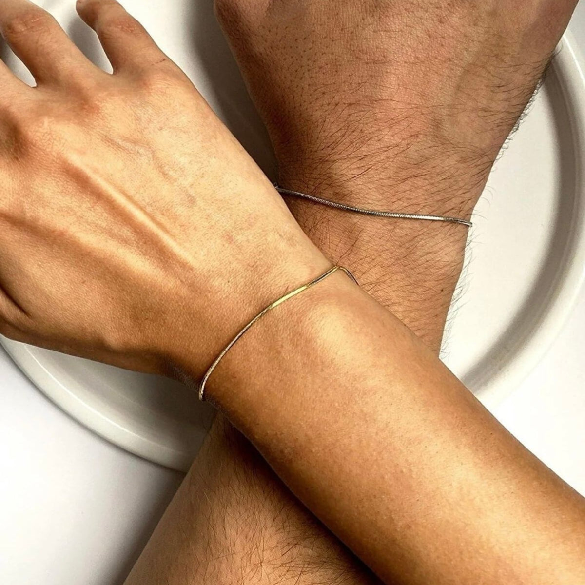 This bracelet is crafted from high-quality materials and features an intricate snake chain design in silver.
