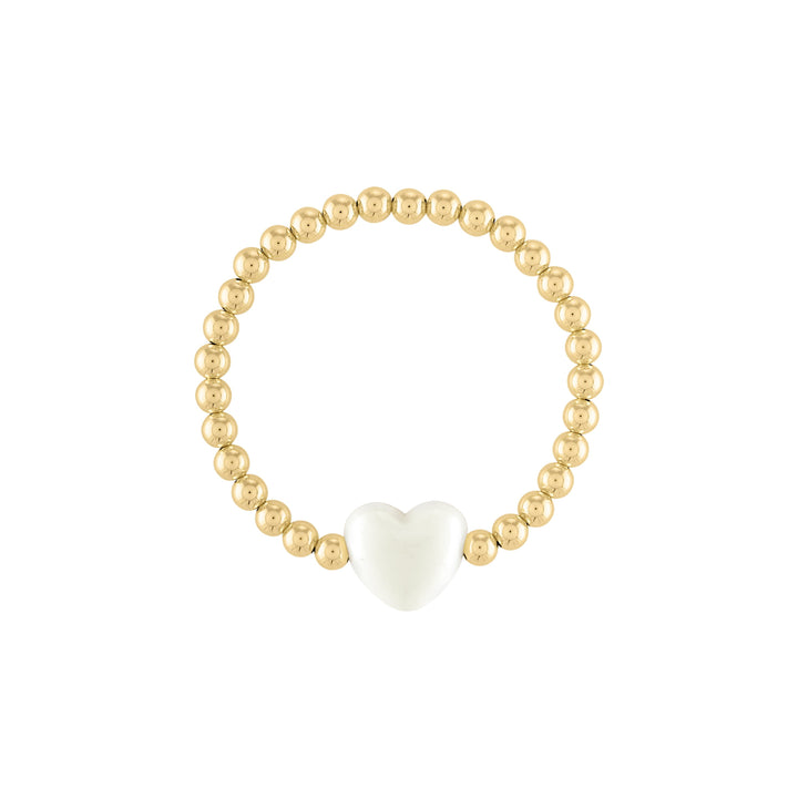 This handmade stretch bracelet features a puff heart bead and is made with 14-karat gold-filled beads.