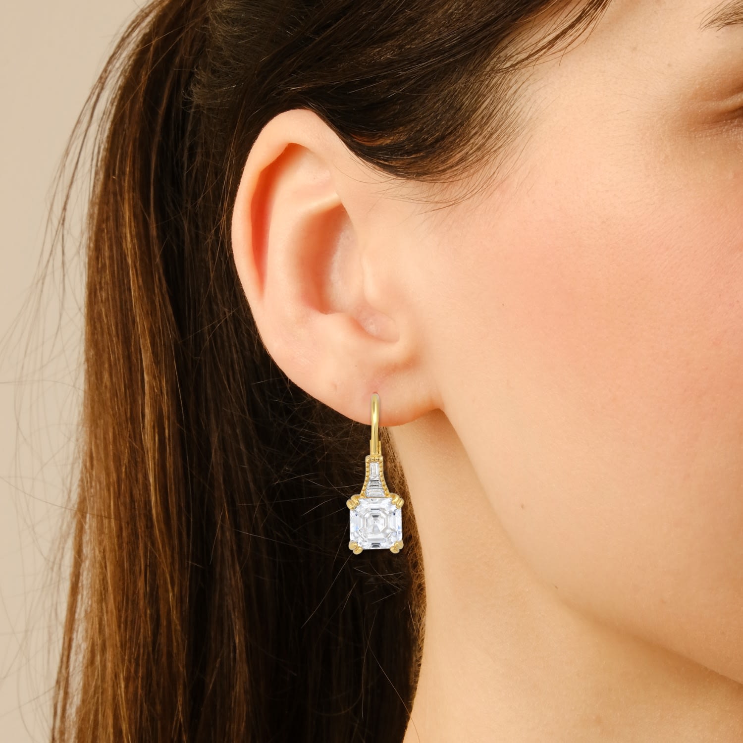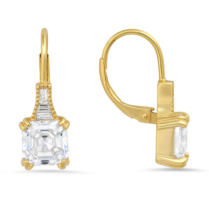 Gold Vintage Asscher Cut Diamond Cz Leverback Earrings
