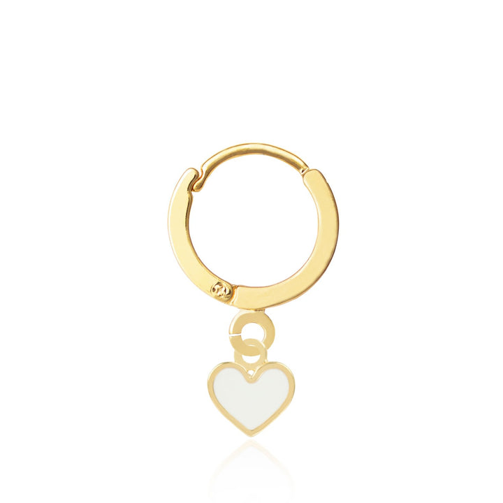 This White Heart Huggie by C.j.m is a sweet and subtle accessory that adds a touch of delicate charm to your look. As a single huggie, it's perfect for creating a unique, mismatched ear stack or for wearing on its own for a delicate statement. Its secure design and adorable heart motif make it a versatile piece that you can easily mix and match to express your individual style.