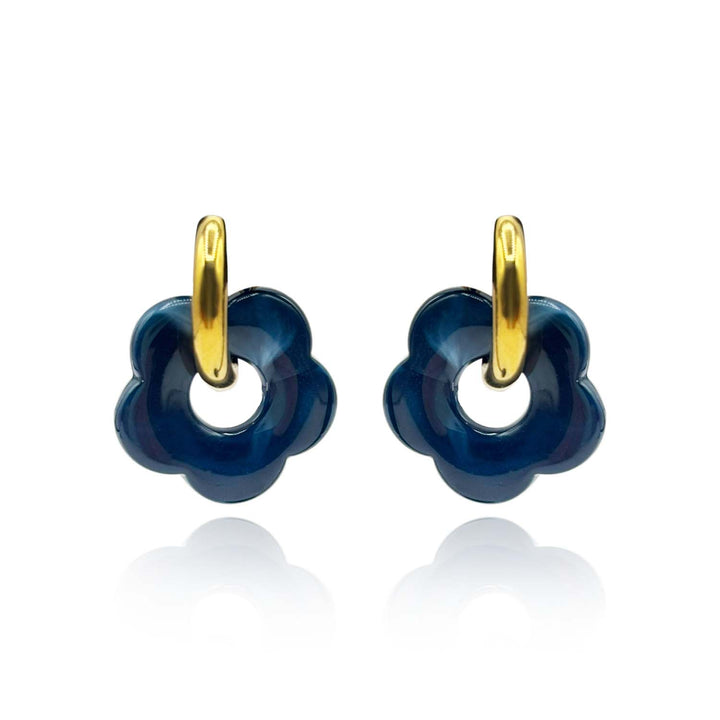 Lapis Blue Resin Floral Drops On Gold Hoops