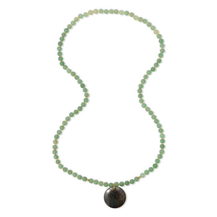 Rockabye Long Pendant Gemstone Necklace - Aventurine - Pyrite Coin Pendant