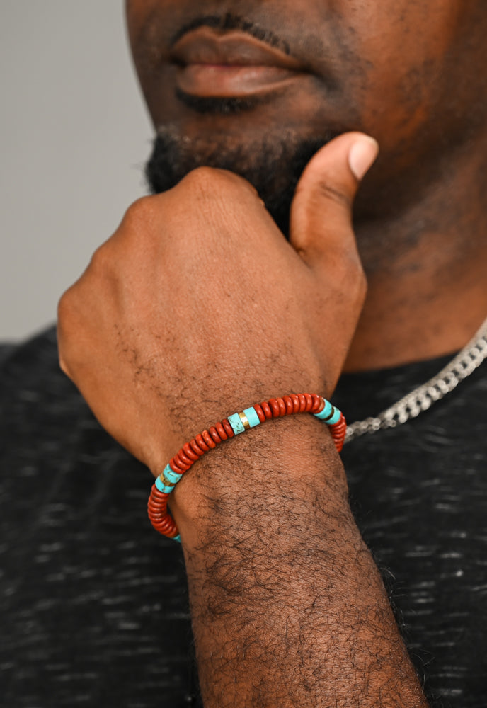 Aang Turquoise & Red Jasper Rope Beaded Bracelet