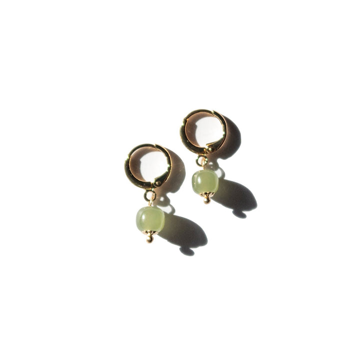 These Berry Small Hoop With Green Bead Earrings by Seree are the sweetest ear candy for hot summer days. The shades of gold and natural nephrite beads create a refreshing and elegant look. Made by handwork of carving and polishing, each piece is unique and adds a touch of nature-inspired charm to your style. These earrings are perfect for quenching your thirst for fresh accessories.