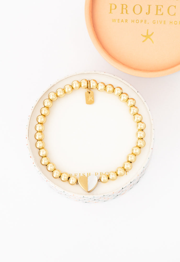 This Give Hope Beaded Bracelet by Starfish Project is a stunning and meaningful accessory designed to share hope. The luxurious 18k gold-plated ball bracelet features a mother-of-pearl heart pendant engraved with "Give Hope," creating a powerful and elegant statement. This piece is perfect for elevating your bracelet stack or for giving as a gift. It embodies a philanthropic and hopeful spirit, making it a beautiful and impactful accessory that transforms lives.