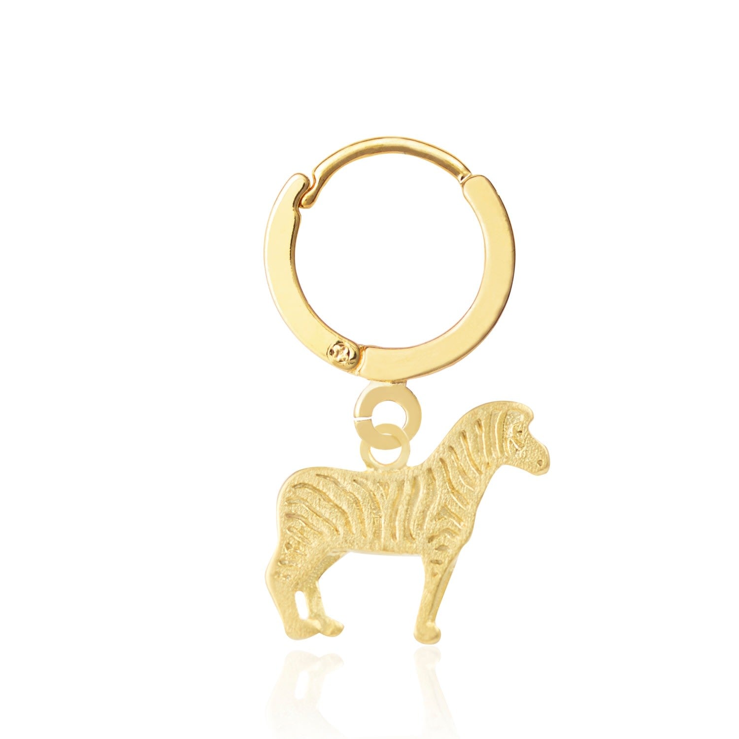This is a single huggie earring crafted from 16k gold plated metal. The description mentions a zebra motif on a huggie, but the material list only says 16k gold plated.