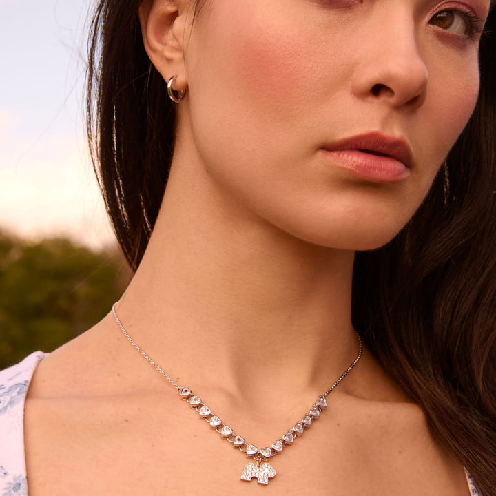 These Cloud Haven Pink Bulldog Hoops Silver by Cloud Haven are an adorable and elevated take on a playful style. These hoops feature a cute pink bulldog painted with enamel and are crafted with rhodium plated brass. They are convertible and can be worn with or without the charm, offering versatile styling options. These hoops are a fun and whimsical way to express your style, adding a touch of charm and personality to your look.