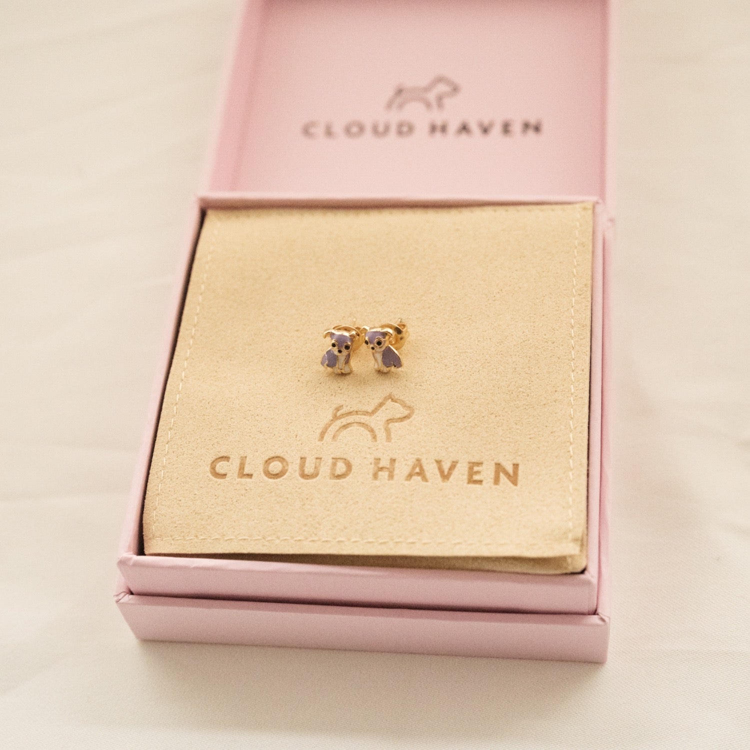 Cloud Haven Purple Bulldog Stud Earrings Gold