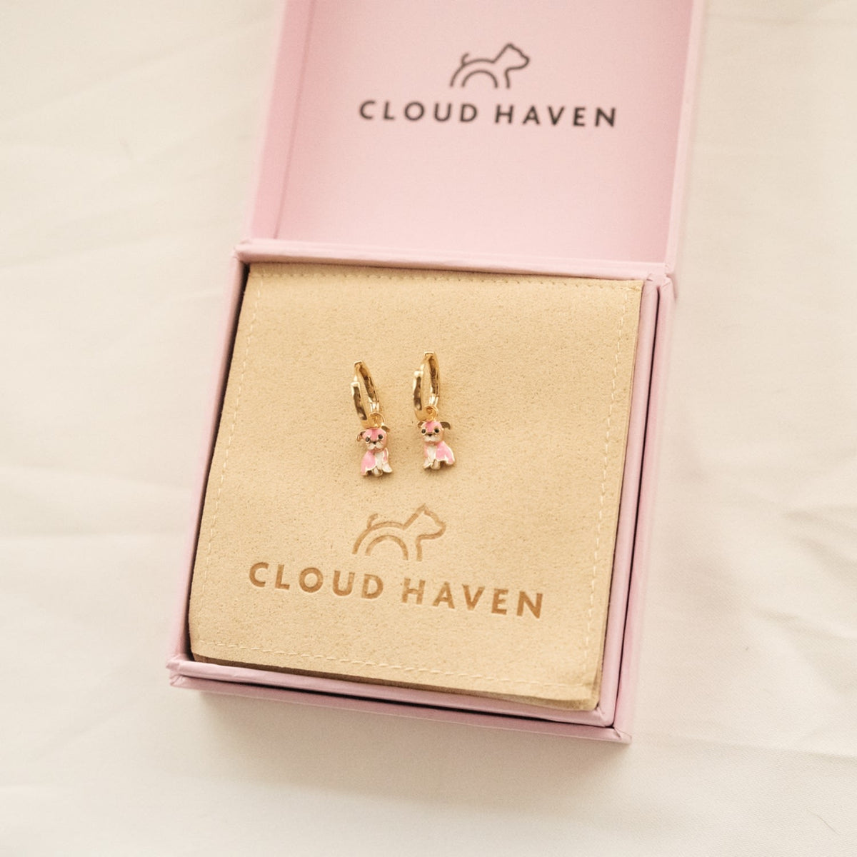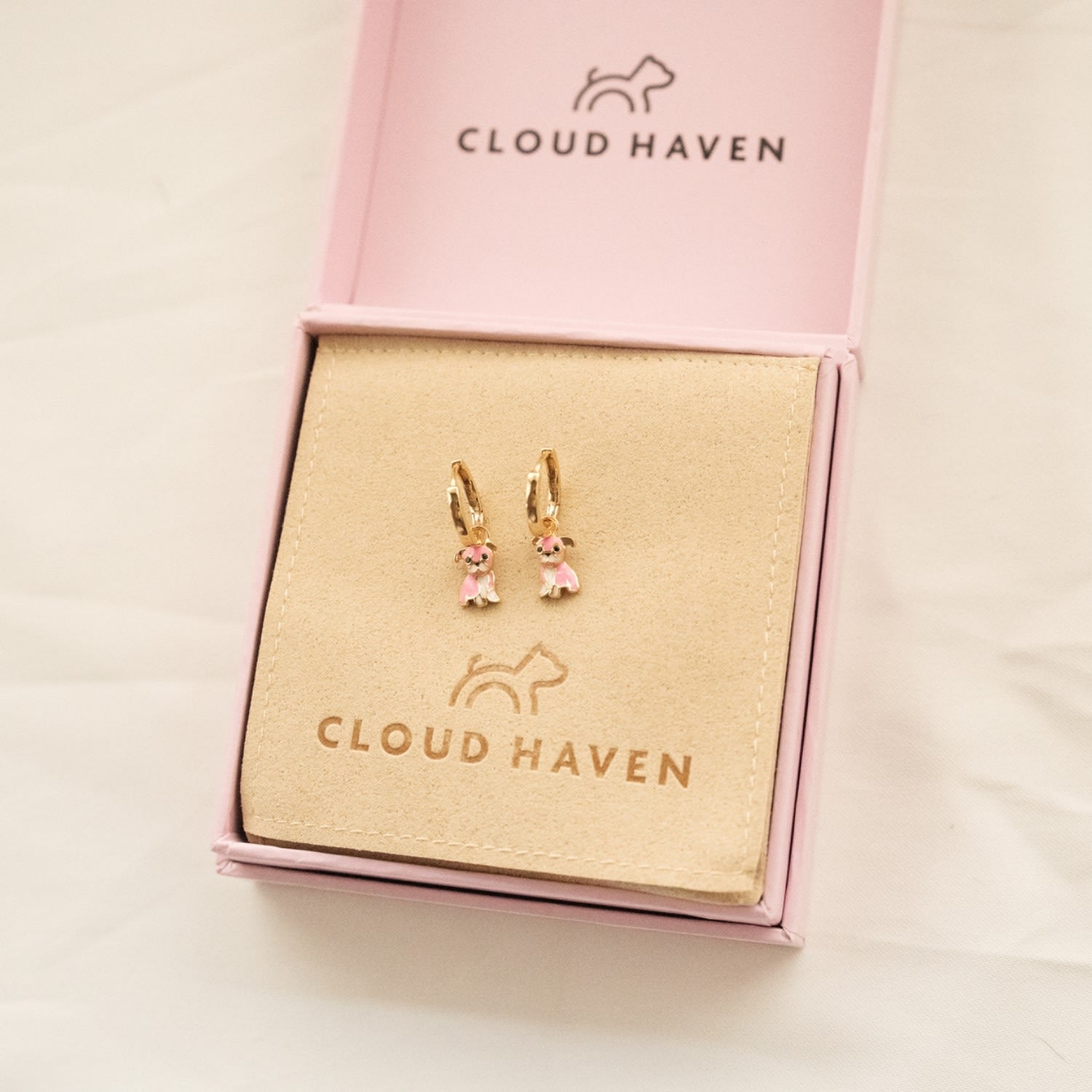 Cloud Haven Pink Bulldog Hoops Gold