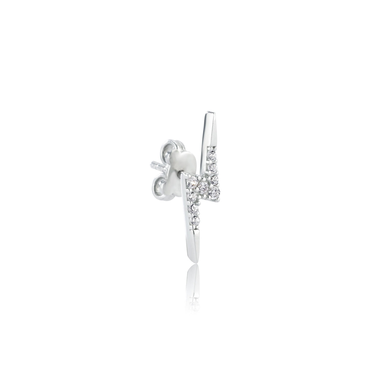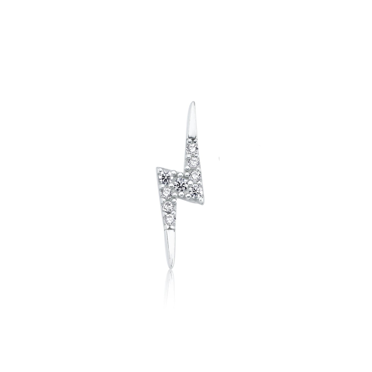 The Flash Earring Silver Mono by Mishka delivers bold edge in a lightning bolt silhouette. Pave-set zirconia crystals sparkle with energy, while its sterling silver base ensures lasting style. Unisex and striking, it’s a single earring that makes a statement of individuality.