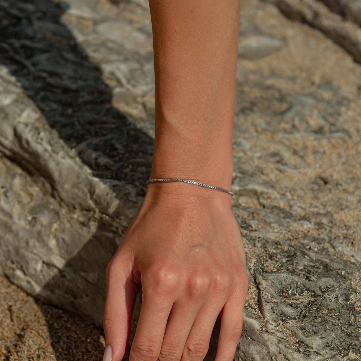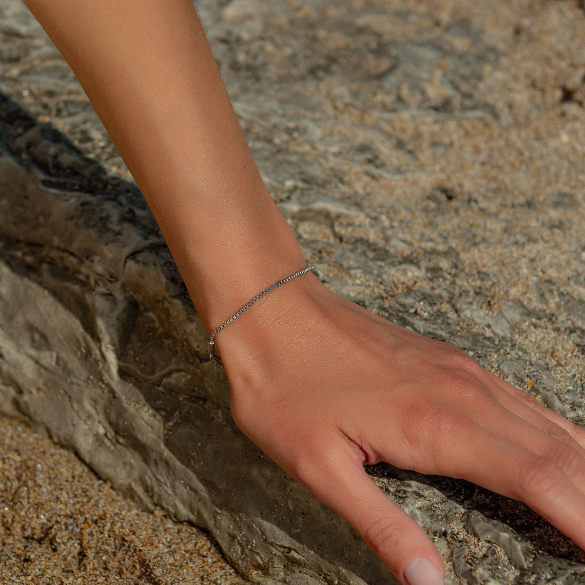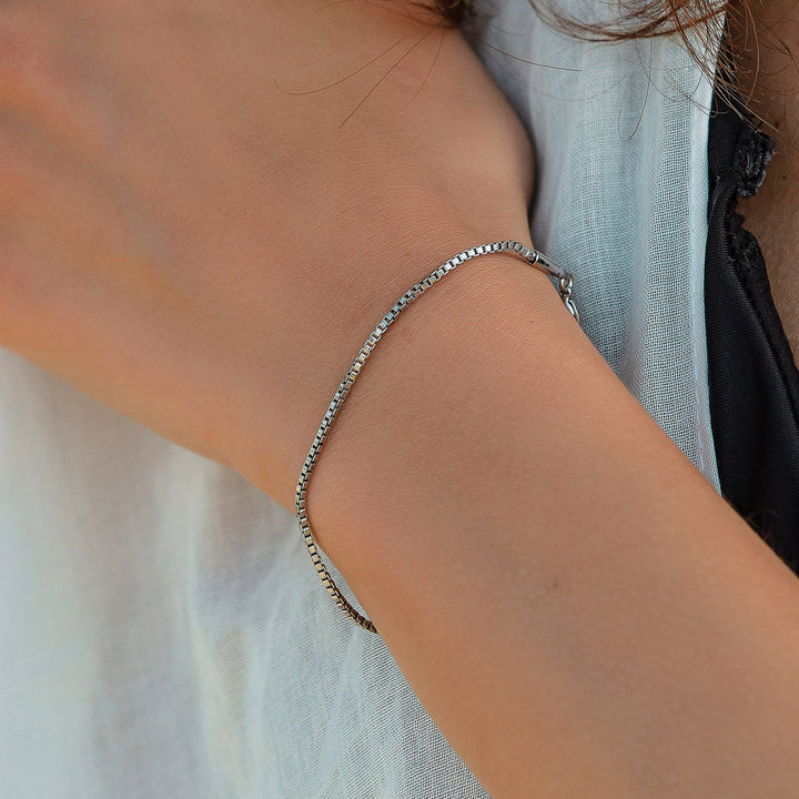 This Tiny Cubicle Silver Chain Bracelet by Mejoma is a sleek and minimalist accessory. Crafted from premium materials, its sleek design is perfect for everyday wear and adds a touch of elegance to any outfit. This bracelet is a versatile and stylish piece that is sure to make you feel confident and chic.