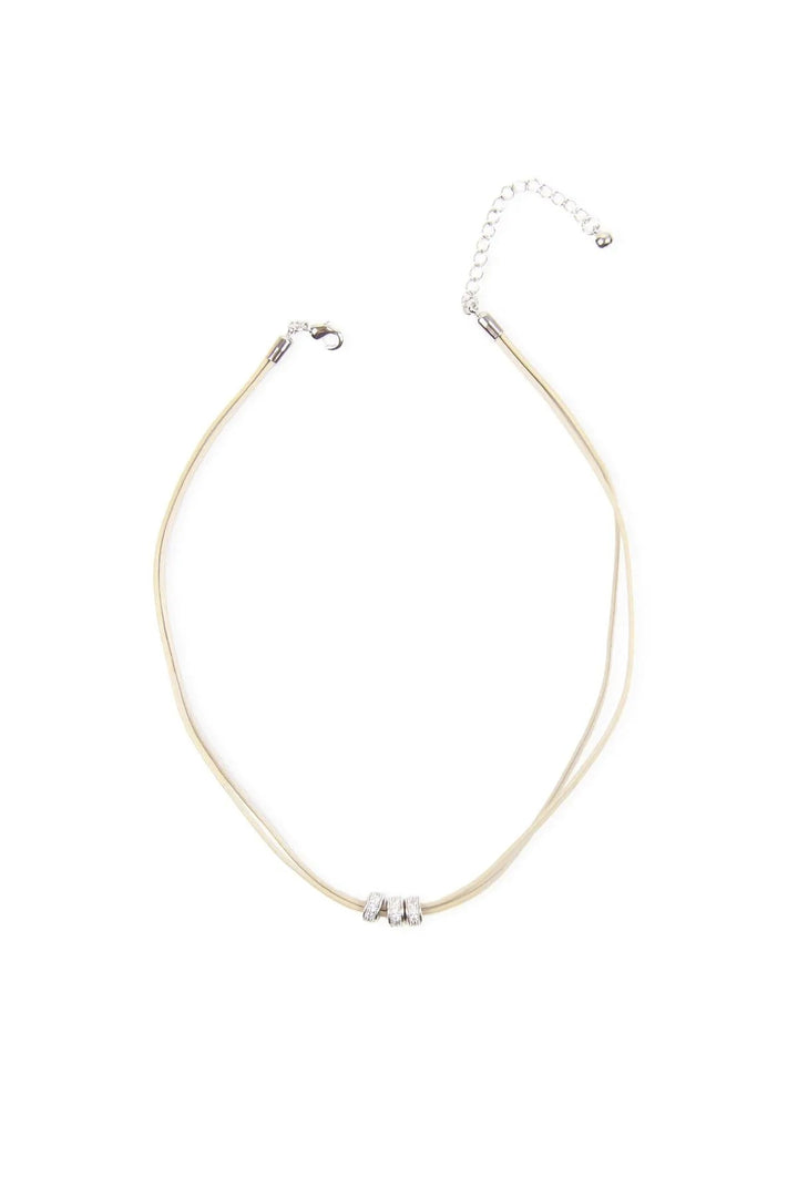 Metallic Taupe Leather Choker With Crystal