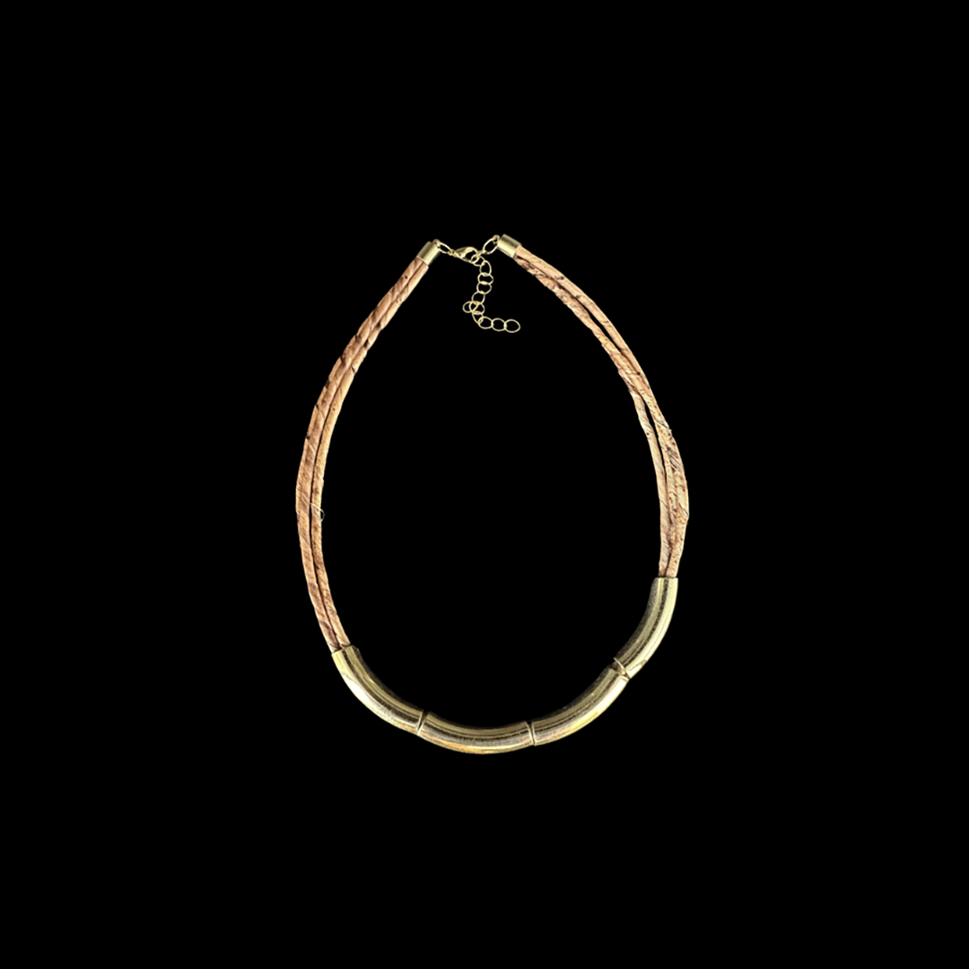 The Arch Banana Fiber Necklace by Nart Nature Making Art is a beautiful and strong statement piece. Crafted with three rows of natural banana fiber and gold-plated findings, it can be worn as a choker, showing a unique blend of nature and elegance. This necklace is a perfect accessory for enhancing any outfit, bringing a sense of organic strength and earthy beauty to your style.