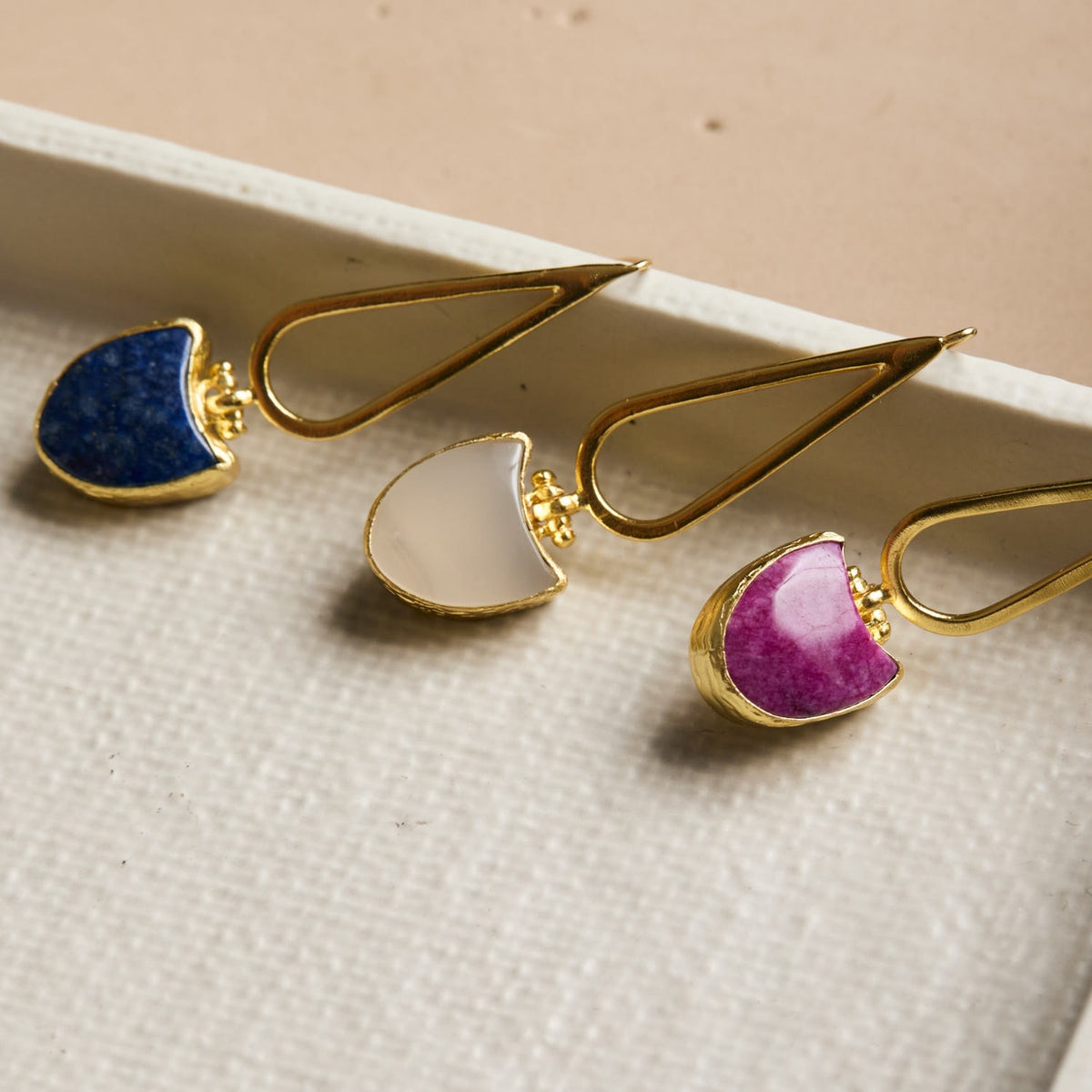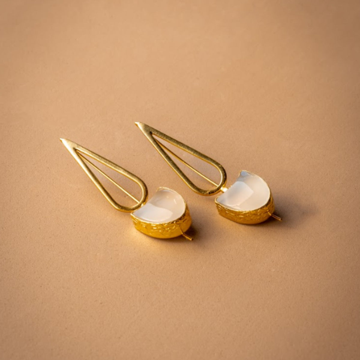 These Arianna Earrings - White Quartz by Rōz are the perfect lightweight and elegant drop earrings. The beautiful teardrop shape is finished with a half-circle white quartz stone, creating a unique and sophisticated silhouette. These push-back earrings are a versatile accessory, perfect for adding a touch of refined beauty to your look.