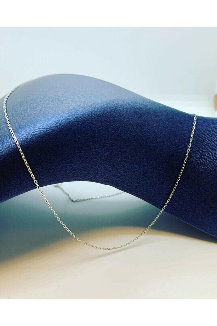This chain is handmade from recycled sterling silver. It has an adjustable length of 18 inches and a lobster clasp. It is also available in gold and rose gold tones.