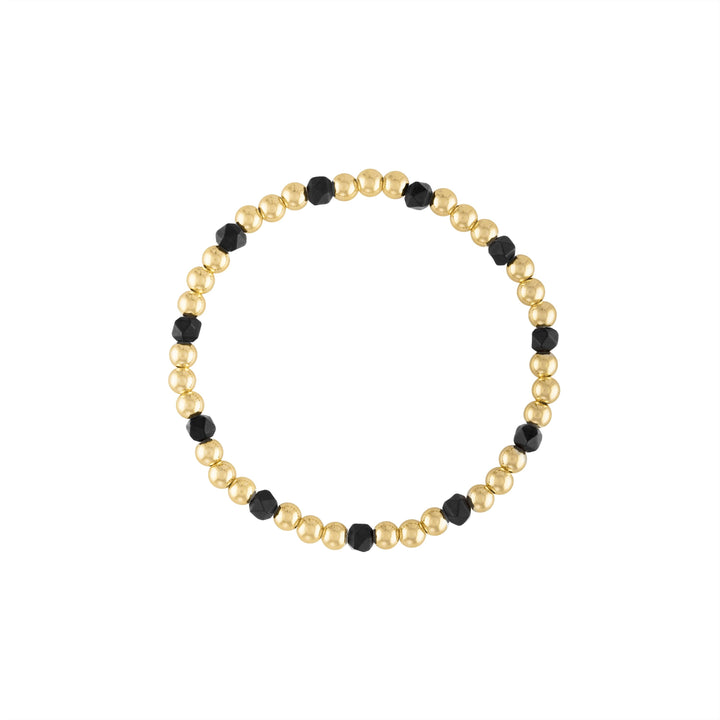 Handmade with 14K gold-filled 4mm bubble beads and faceted 4mm black matte onyx gemstones; 6.5" stretch design.