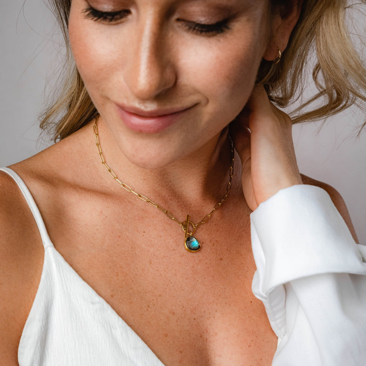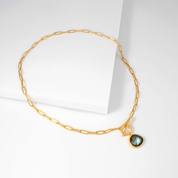 Labradorite T-Clasp Gold Necklace
