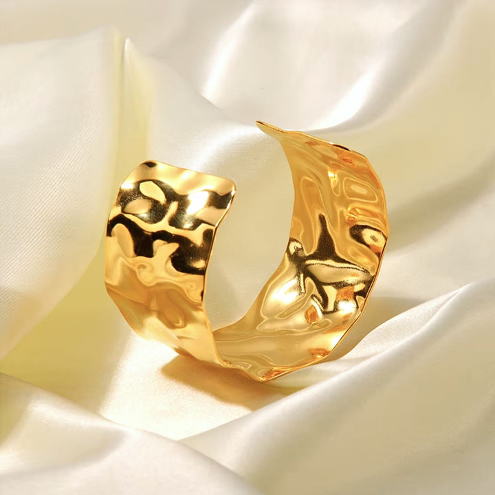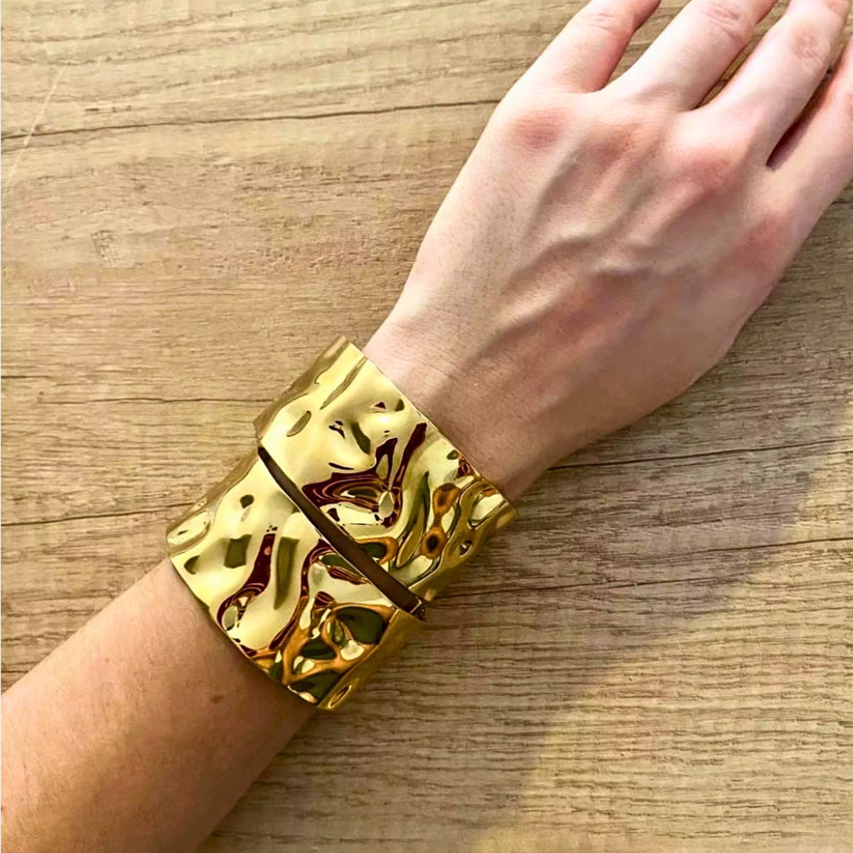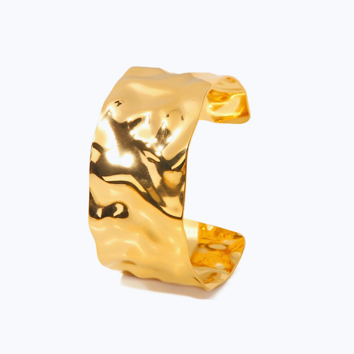 This Silver Rhea Hammered Open Cuff Bracelet by Olivia Le is an effortless and luxurious statement piece. The bracelet features a beautifully hammered design, adding depth and texture to your wrist. Made from stainless steel in a silvertone finish, it is tarnish-resistant, hypoallergenic, and lightweight. The open style allows for easy adjusting.