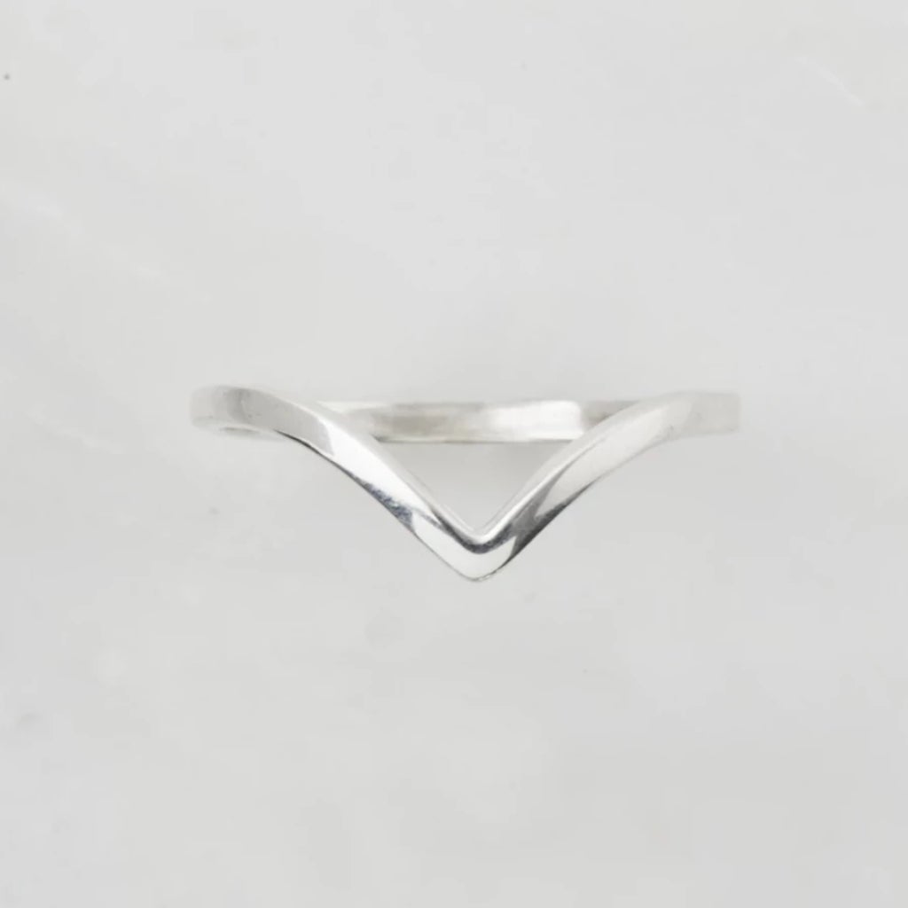 This Rani Silver Stacking Ring by Charlotte's Web Jewellery captures true elegance in its delicate chevron design. Crafted from striking sterling silver, it's a versatile piece that can be worn on its own or creatively stacked with other rings to create a signature, unique look. This ring is a perfect way to add a touch of modern sophistication and a personal flair to your jewelry collection.