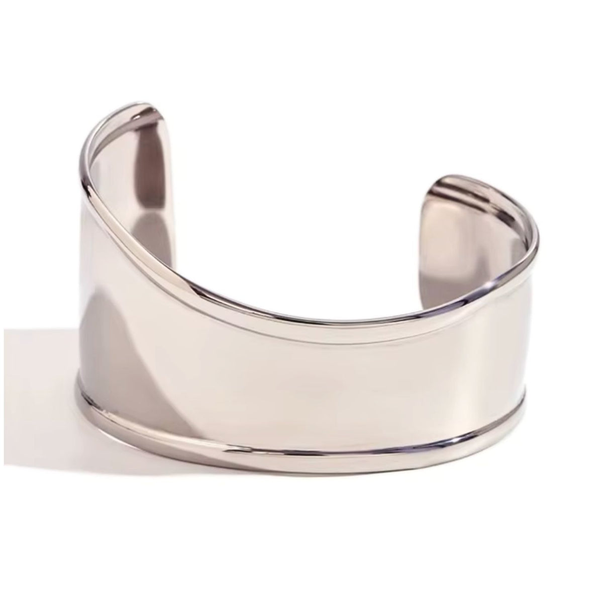 This cuff bracelet is made of Stainless Steel. It is tarnish resistant and hypoallergenic.