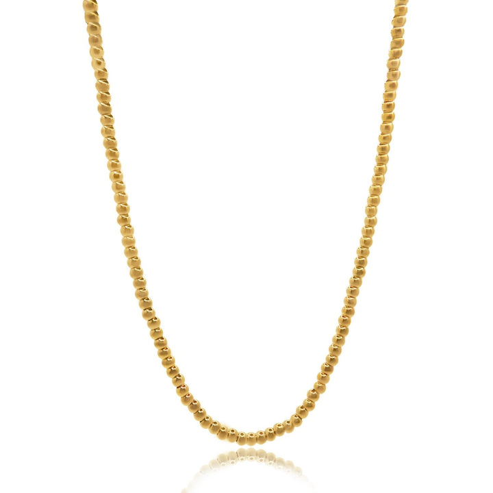 This Amelia Beaded Dainty Necklace by Viea reimagines the classic ball chain with contemporary finesse. Its tightly set golden beads create a delicate texture, radiating understated elegance. Perfect for layering or worn solo, it is a versatile piece that symbolises effortless style and modern femininity.