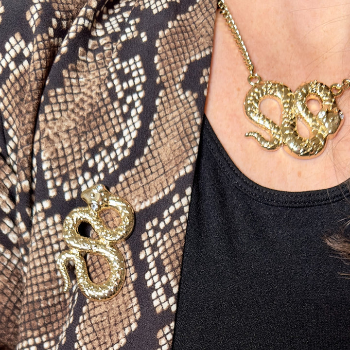 These Python Earrings In Yellow Gold by Jagged Halo Jewelry are a stunning and lightweight pair designed to unleash your inner power. These intricate serpent earrings feature a luxurious gold-filled finish and a mesmerizing coiled design that embodies both transformation and strength. Crystal accents in the eyes add a touch of sparkle. They are perfect for adding a bold yet elegant statement to any outfit, balancing edge and glamour for any occasion.