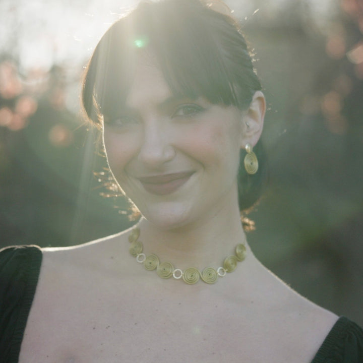 These Roma Earrings by Raízes highlight the natural elegance of golden grass in a coiled, minimalist design. Lightweight yet striking, they exude nature-inspired sophistication and understated glamour. Their timeless form celebrates artisanal weaving, bringing organic beauty into a refined, modern accessory.