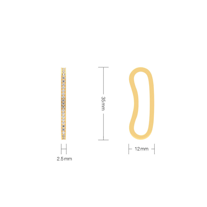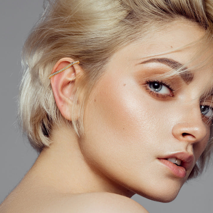 Long Curvy Thin Bar Ear Cuff With Pave Cz - Gold