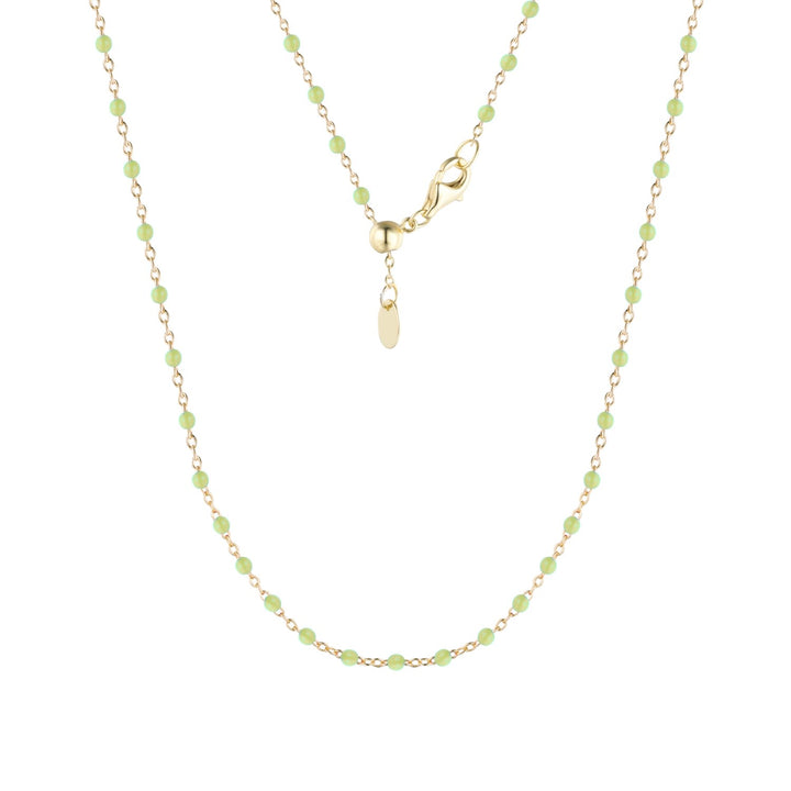 Enamel beaded detail set in 18" gold-plated 925 sterling silver chain with adjustable slider.