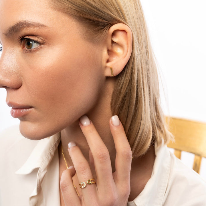 These Bar Stud Plain Earrings by Spero London are sleek yet timeless. Their clean silhouette is enhanced by sparkling cubic zirconia, creating a modern take on a classic stud. Perfect as an everyday staple or as part of a curated ear stack, they offer understated luxury and versatile elegance.