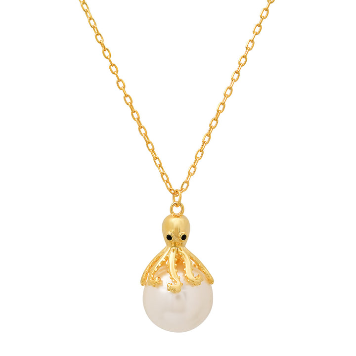 Gold Pearl Octopus Pendant Necklace