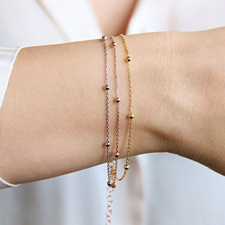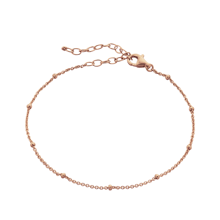 Bead Curb Chain Sterling Silver Adjustable Satellite Bracelet - Rose Gold