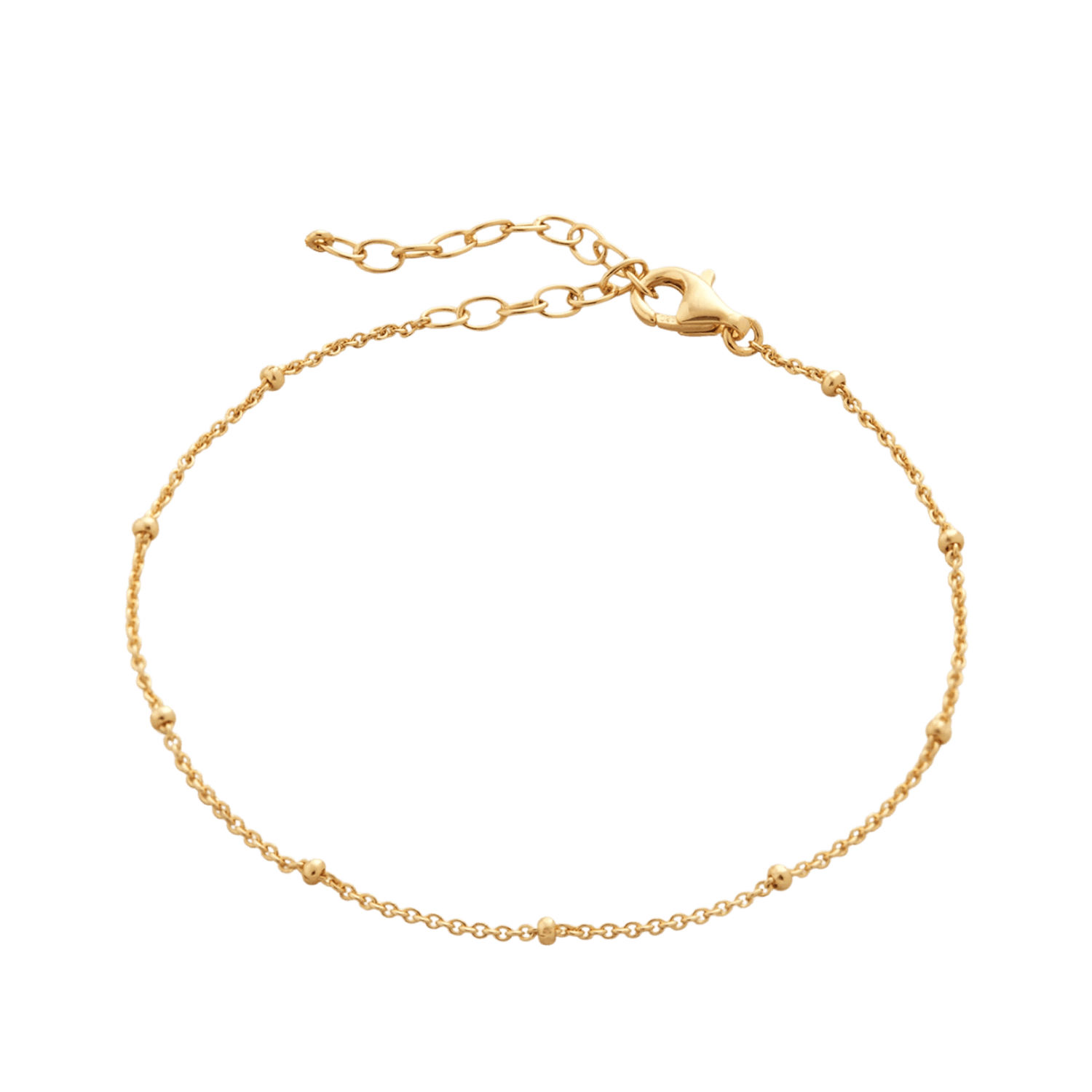 Bead Curb Chain Sterling Silver Adjustable Satellite Bracelet - Gold