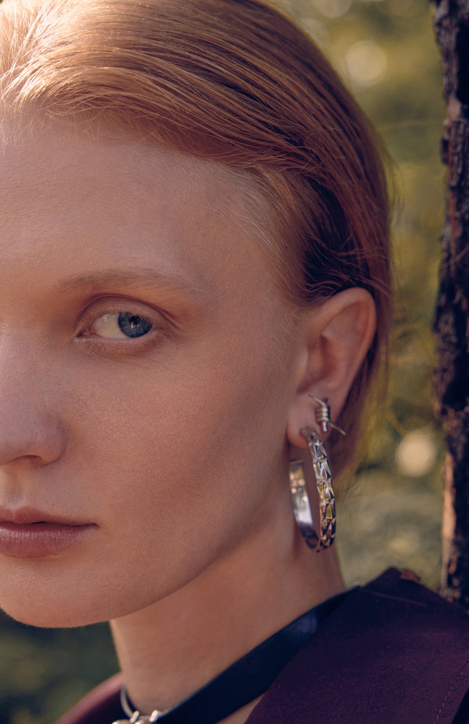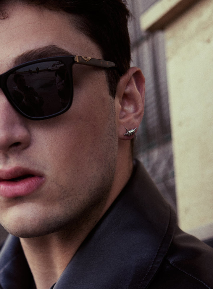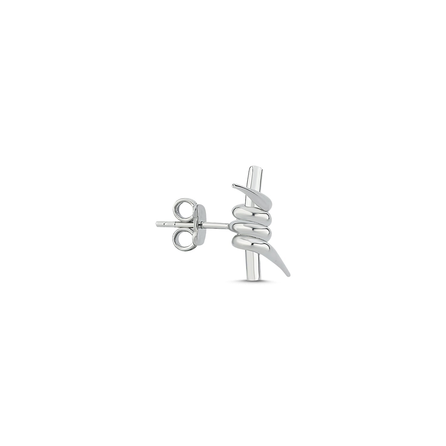 This Toxic Barb Wire Mono Stud Earring by Mishka exudes bold defiance with a sharp, unconventional edge. Designed in the form of barbed wire, it speaks to individuality, rebellion, and the paradox of attraction and resistance—keeping the world at bay while drawing attention. A unisex piece with contemporary flair, it highlights Mishka’s fearless design ethos and transforms a simple stud into a powerful personal statement.