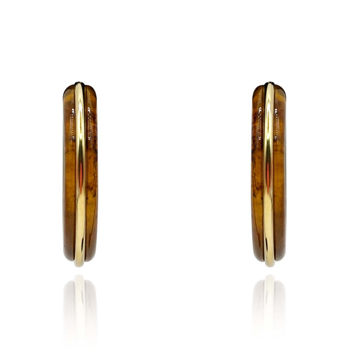 Tortoise Resin Hoop Earrings With Gold Stripe