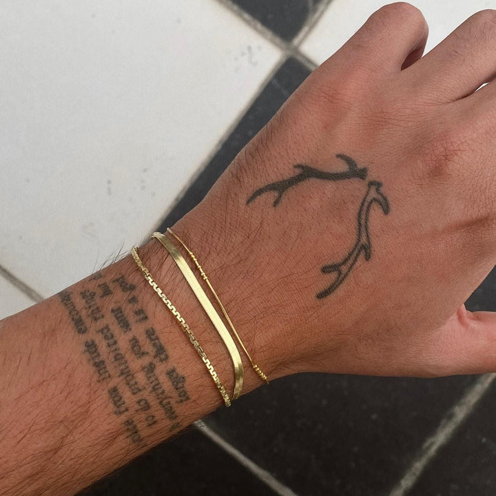 This Six Beads Bracelet in Gold by Spero London offers understated elegance with a contemporary edge. Its trio of six polished beads delicately accents a fine chain, making it a versatile piece that can be worn solo or layered with other bracelets. Minimal yet distinctive, it’s an everyday essential.