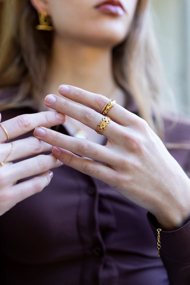 Crafted from 18k gold-plated stainless steel, this ring is a durable and beautiful accessory.