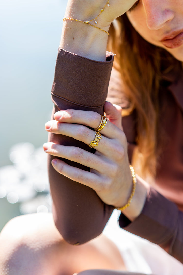 This Coco Ring by Tseatjewelry is the perfect dainty ring to add a touch of sparkle. Its delicate design and polished finish make it ideal for stacking and layering, allowing you to create a personalized look. This ring is a beautiful symbol of subtle elegance and effortless style.